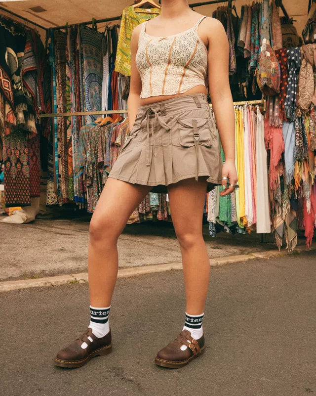 Neutral summer tones — worn in from the first step, so you can make the most of the longer days. We've built our grunge-essential 8065 Mary Jane shoe using soft, pebbled Virginia leather. The shoe is made with over 6 decades of DM's construction heritage: welted on a translucent grooved DMS outsole and secured with our signature yellow welt stitching. The two-buckle silhouette is detailed with antique gold hardware and a subtle bitter choc welt.