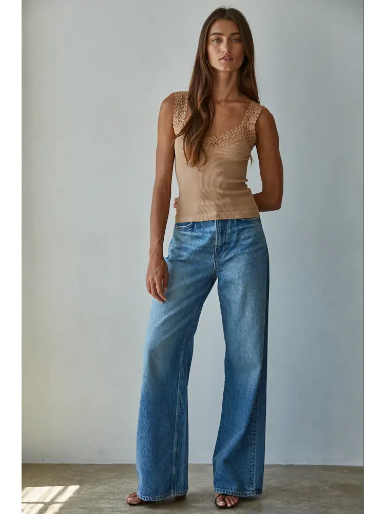 Lucy Knit Seamless Ribbed Tank Top with Lace Trim