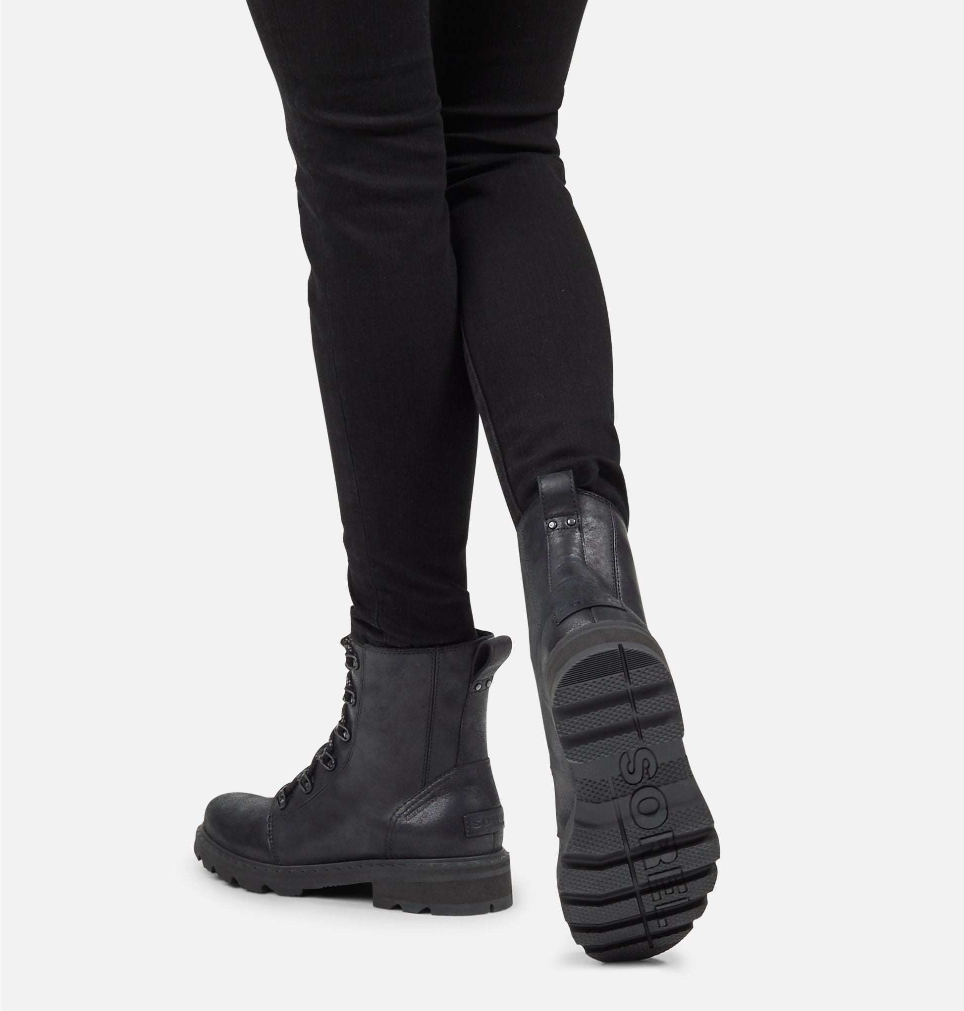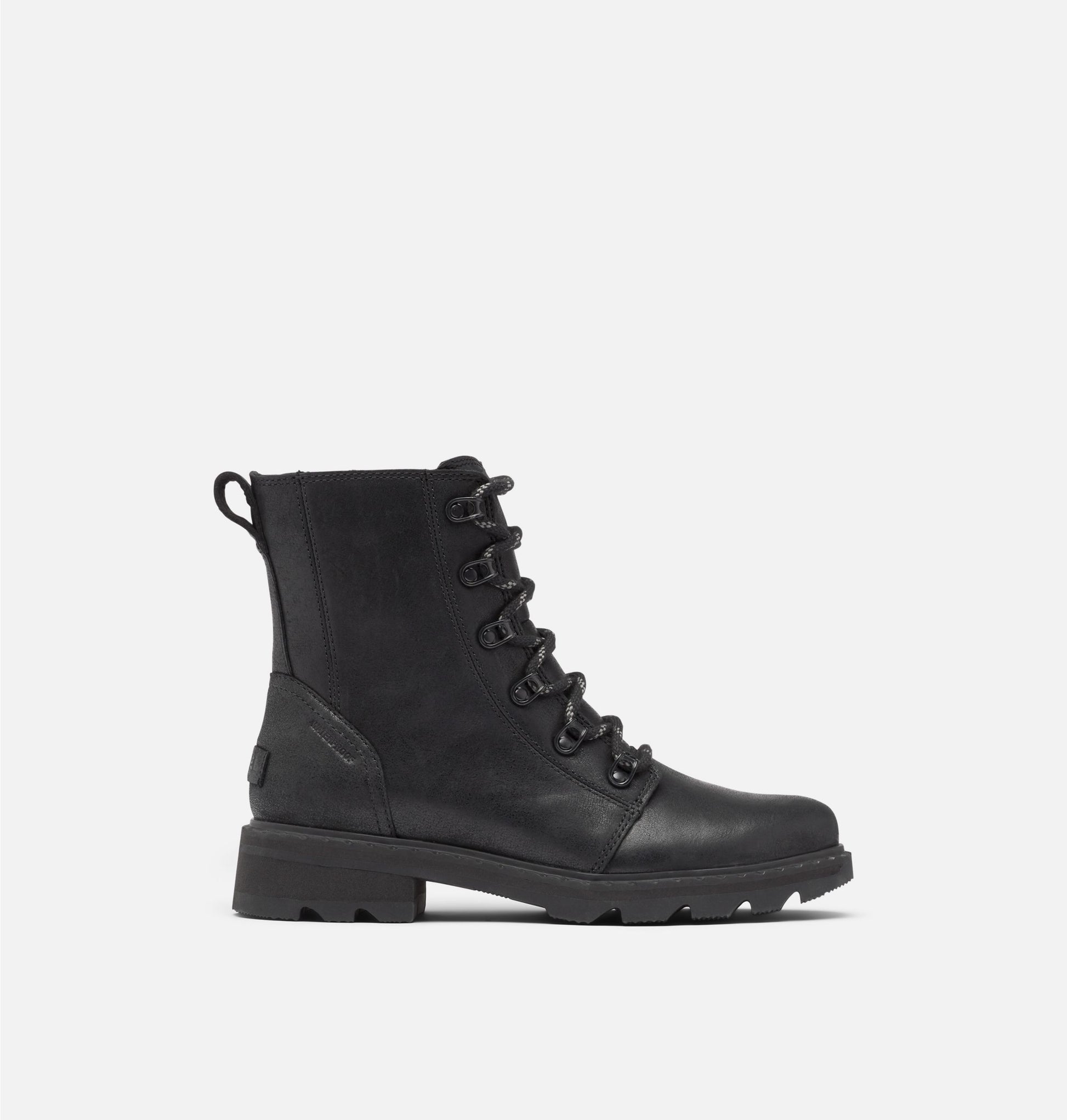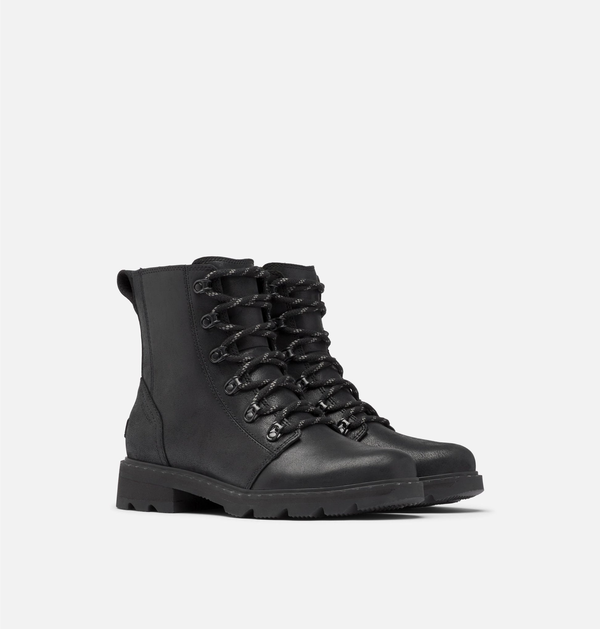 - UPPER: A lace-up boot with a modern kick. Metal eyelets. Synthetic and canvas lining. Leather heel pull tab. Seam-sealed waterproof construction. Laces are not waterproof.