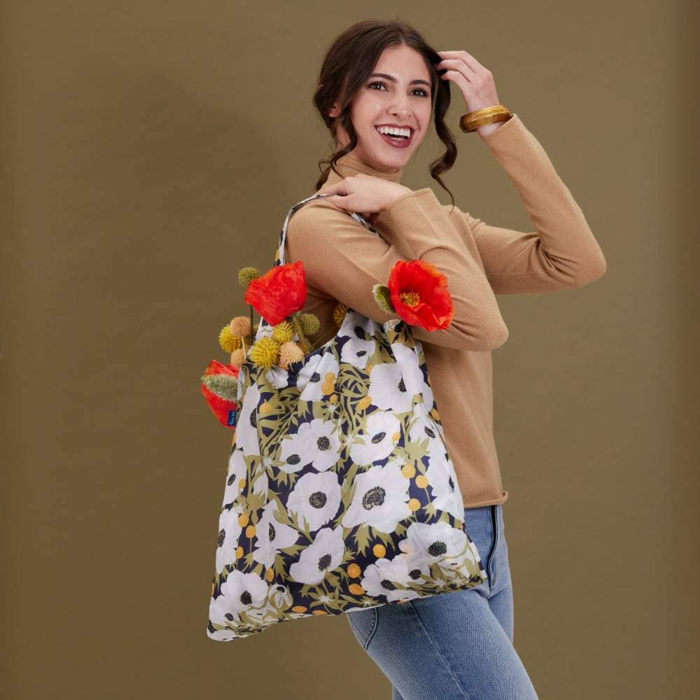 ANEMONE POPPY blu Bag Reusable Shopper Tote