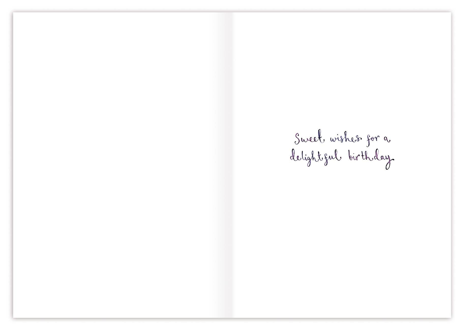 Inside verse: Sweet wishes for a delightful birthday • Size: A6, 4.6" x 6.4" • Illustrated by Louise Mulgrew • Envelope color: Kraft • Printed in the USA on high-quality recycled post-consumer waste paper • Pre-priced • About The Artist: Working with gouache and watercolor, Louise designs in her tiny studio in Brighton, England, inspired by her love of all animals, and passion for the natural world. Louise was named 2023 Artist of the Year by the USA Greeting Card Association.