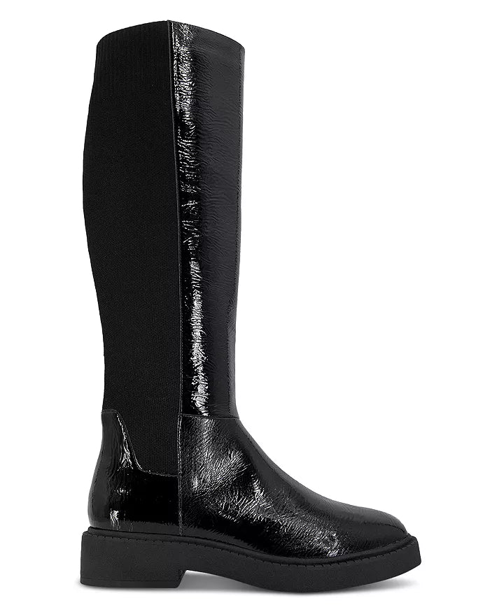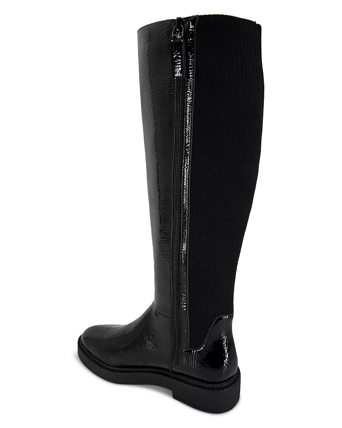 Stretchy rib-knit paneling cradles the shaft of this water-resistant knee-high boot with breathable leather lining and a cushioned footbed.