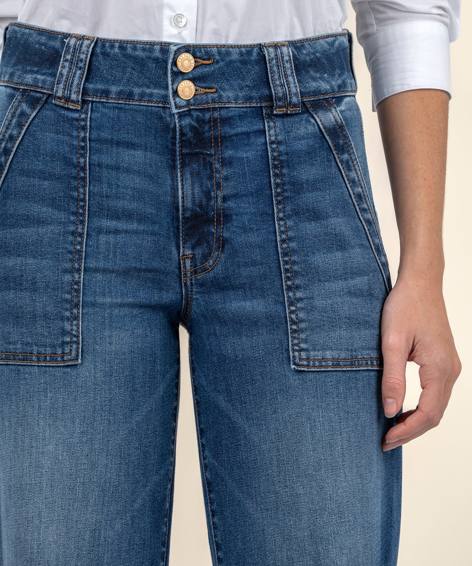 - Patch pockets and wide legs lend a '70s vibe to these perfectly faded jeans cut with a touch of comfy stretch.