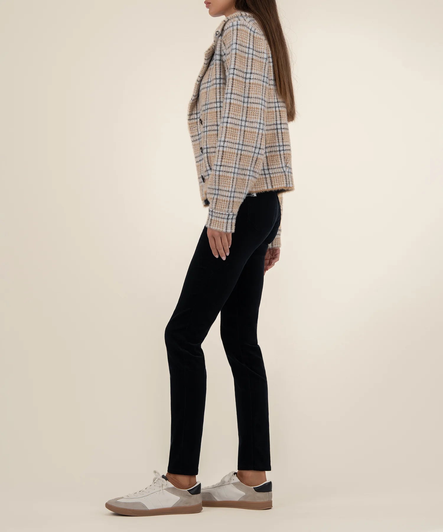 - Step out in style with this double-breasted coat featuring a classic plaid pattern in a soft cream color. Designed with pleated sleeves and hems, it offers a feminine and soft look that’s perfect for any occasion. Elegant yet cozy, this jacket adds timeless charm to your wardrobe.
