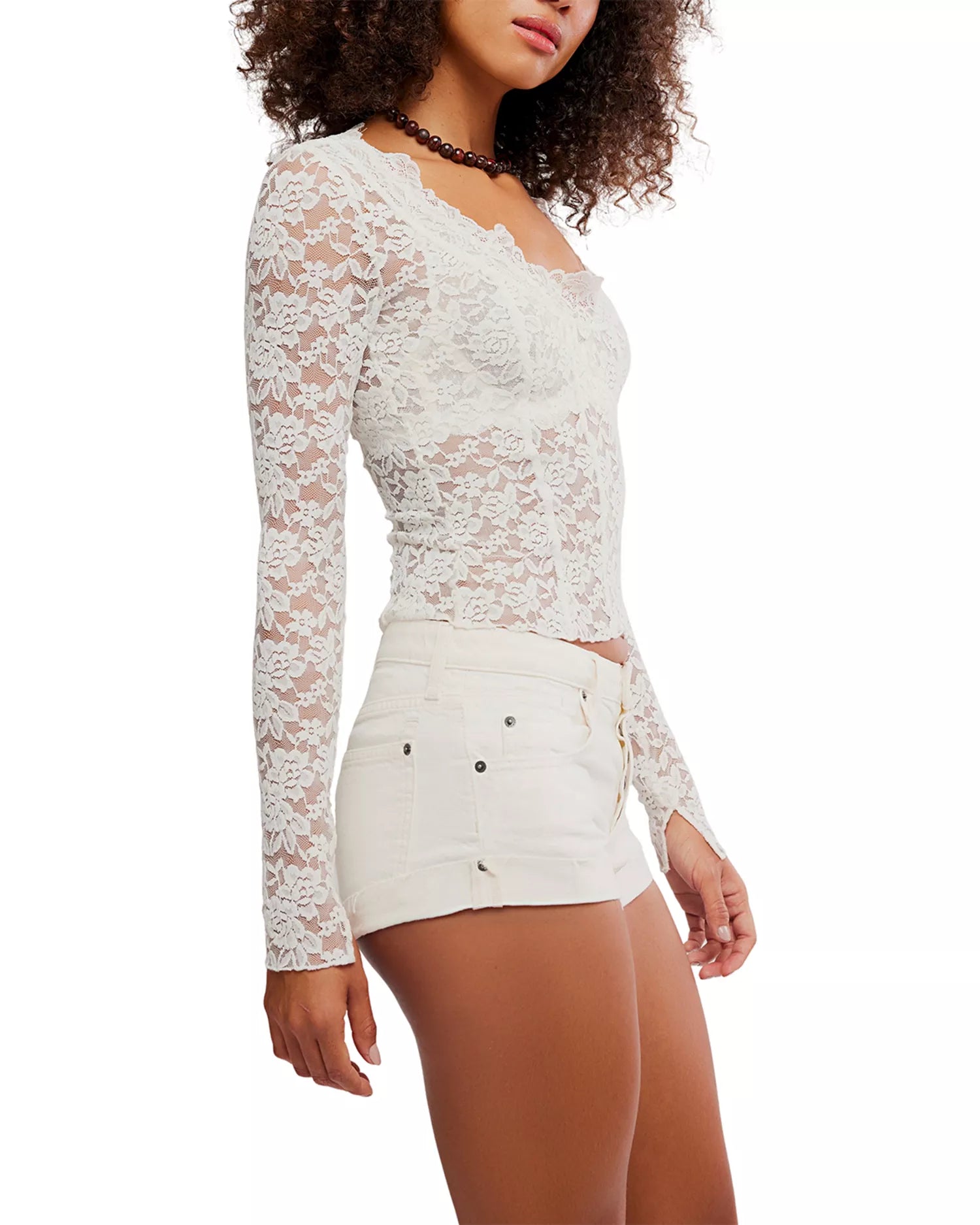 Sheer and stunning in floral, this long sleeve top from Intimately features vertical seam details, a wide scoop neck, and long fitted sleeves for a forever flattering silhouette.