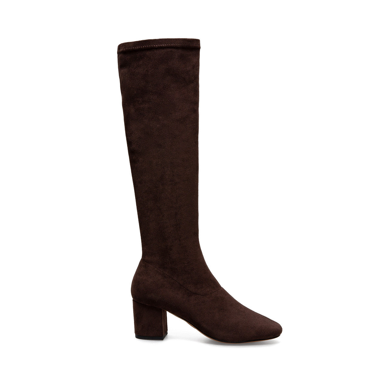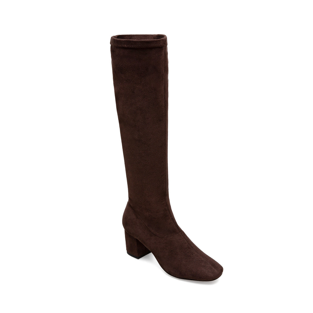 Stretchy faux suede amplifies the contemporary appeal of a knee-high boot grounded by a classic block heel.