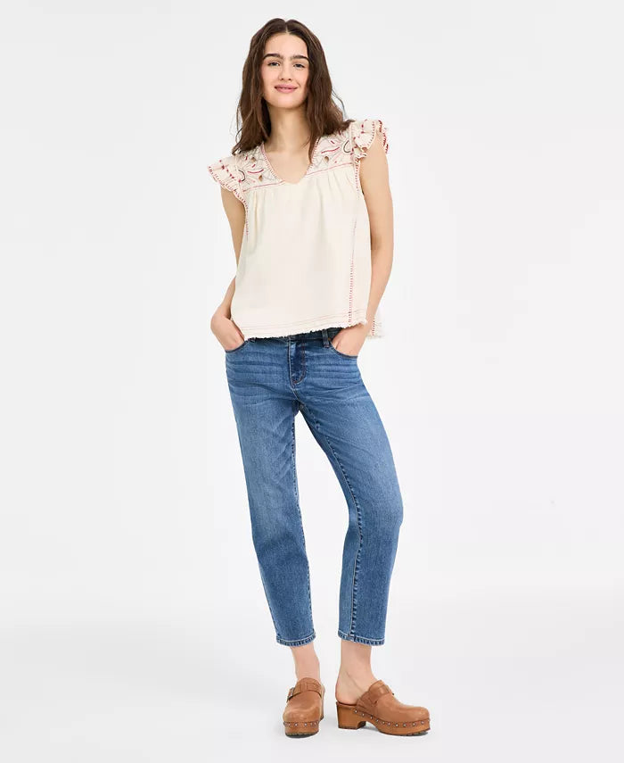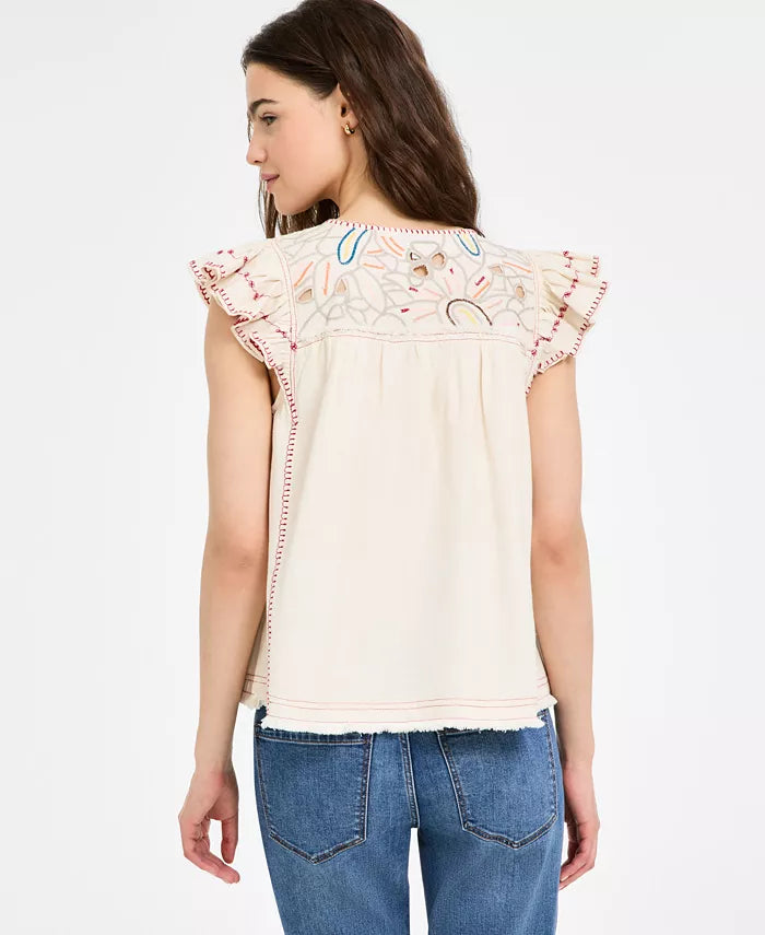 Flutter-Sleeve V-Neck Embroidered Blouse