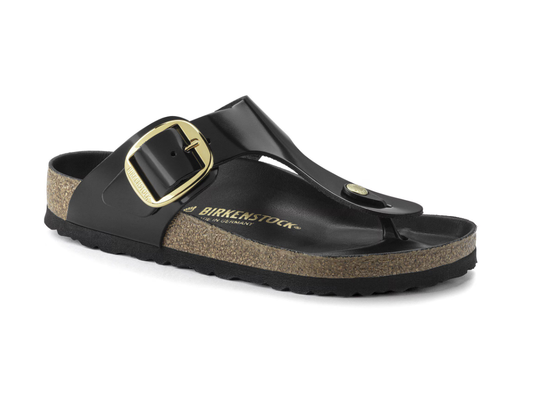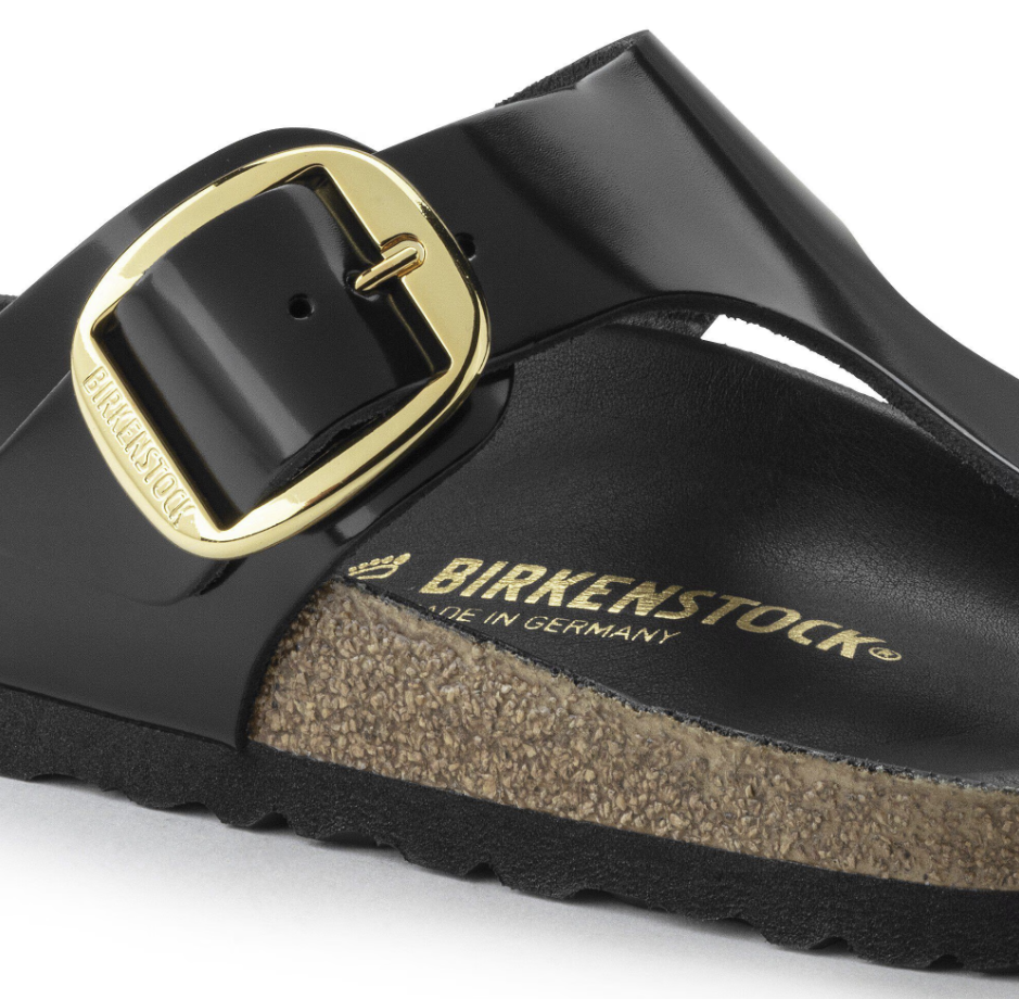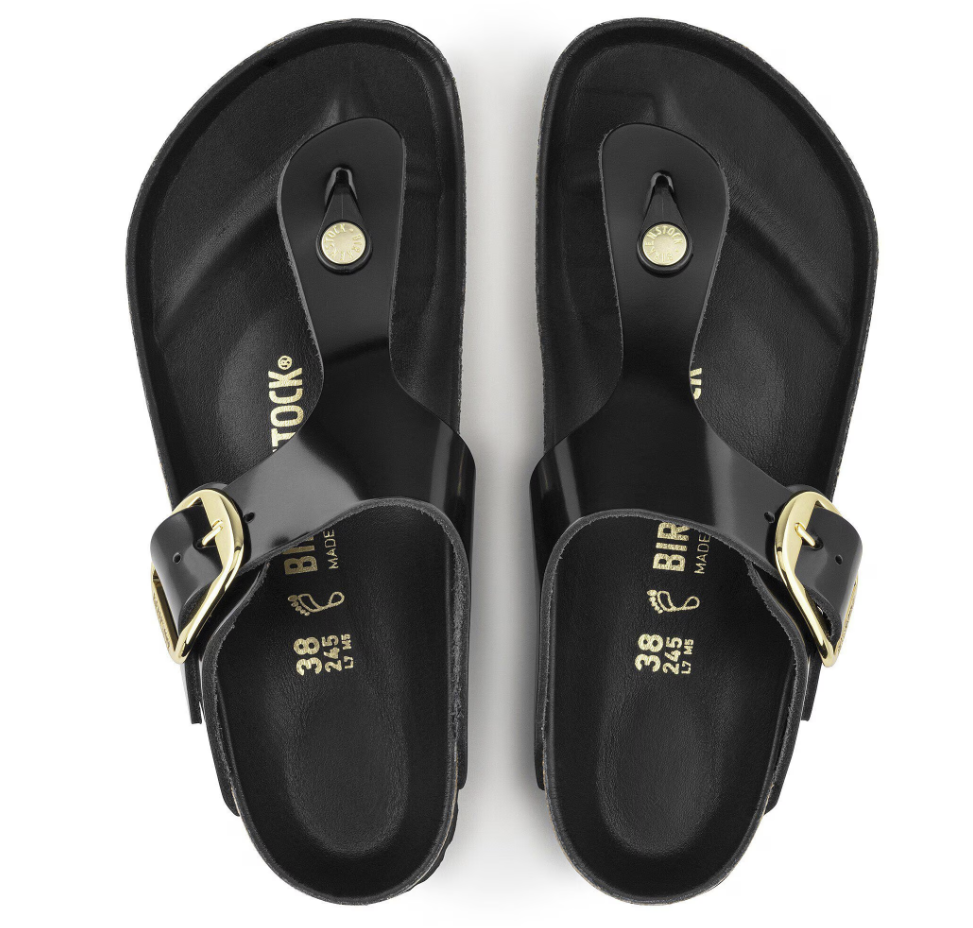 The Gizeh sandal refines the fit with legendary comfort and elegant detailing. This design doubles the buckle and ups the shine with gleaming, oversized hardware and a glossy finish. The style is grounded in our original contoured footbed, designed to shape to you for the ultimate in custom support.