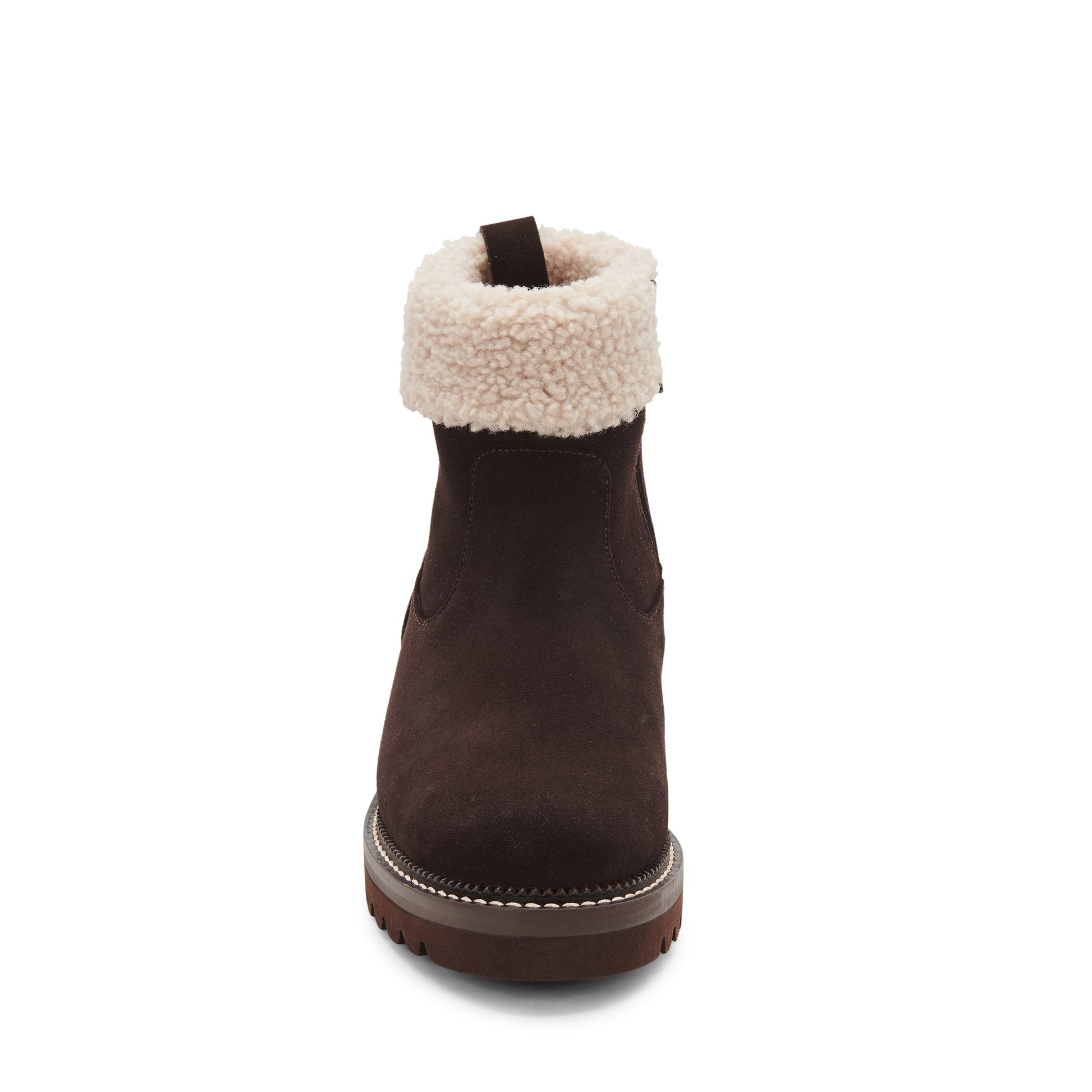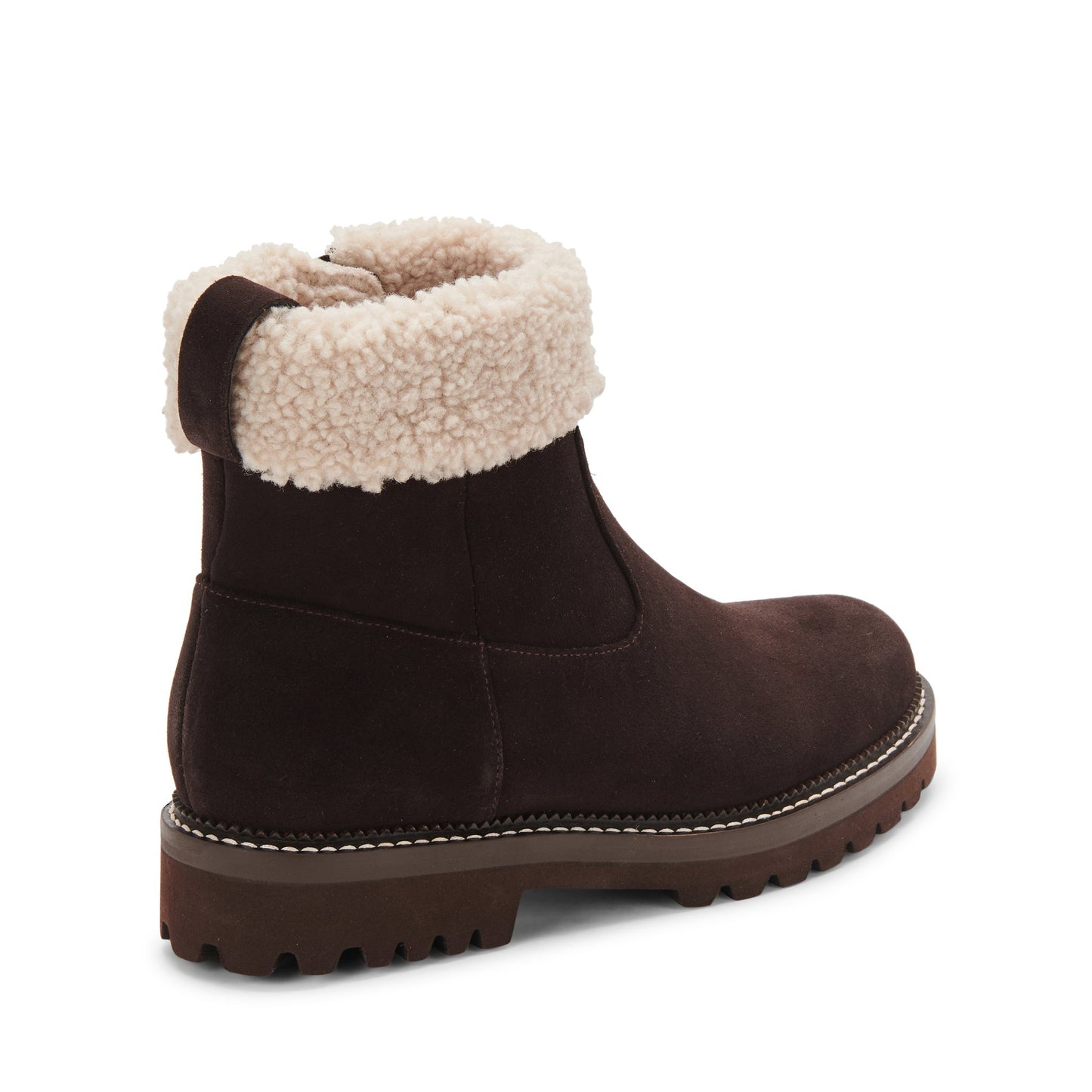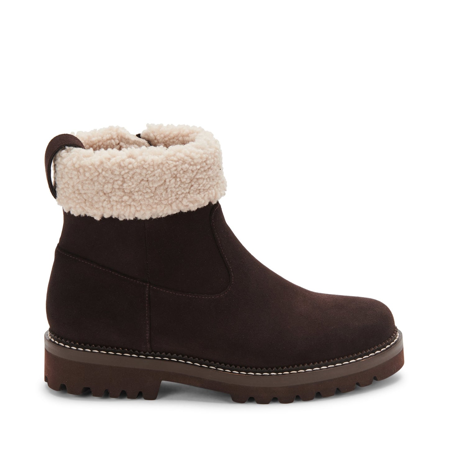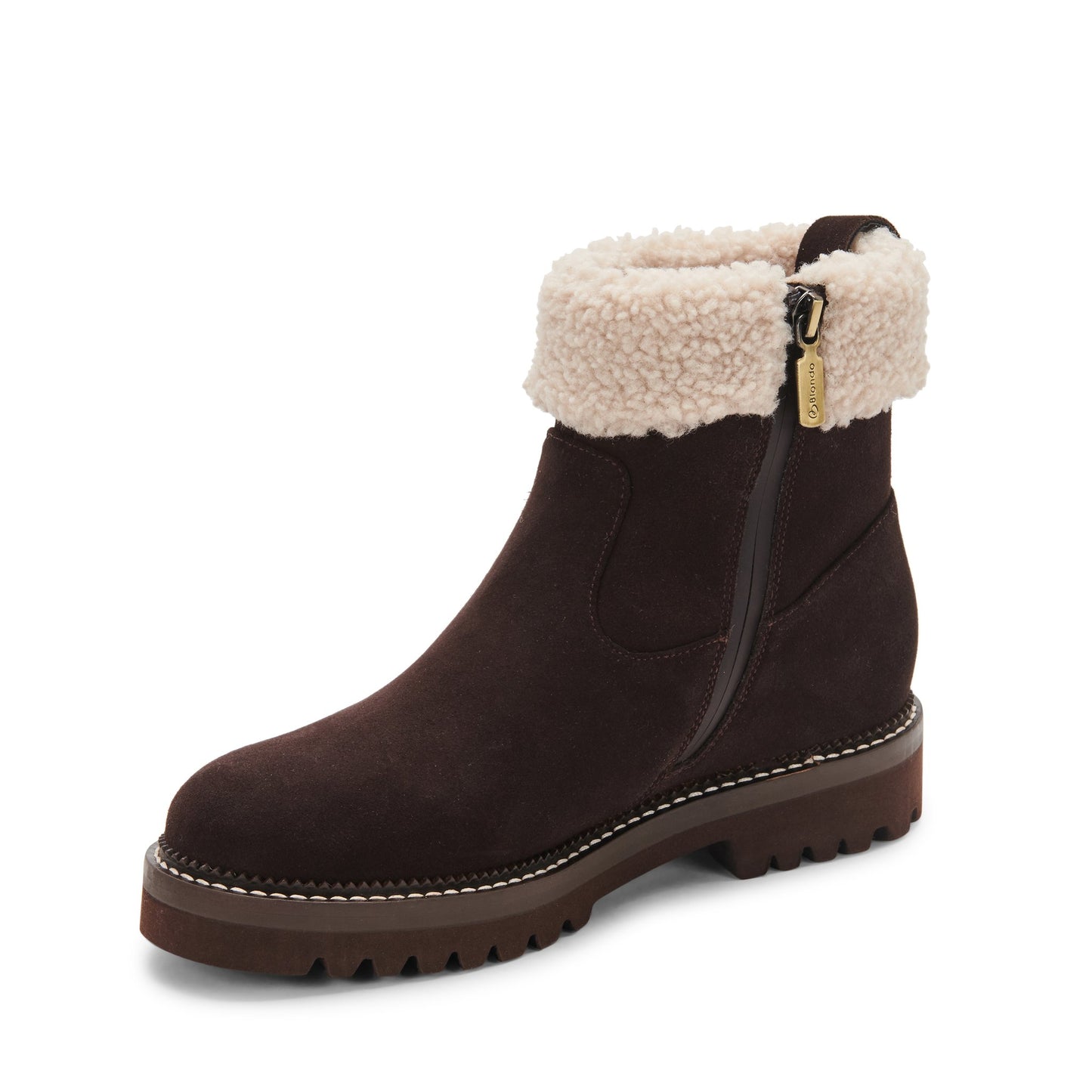 - The Blondo® Harlow Waterproof has easy-care suede that gets a chic faux-shearling trim at the ankle of this weather-defiant bootie set on a grippy lugged sole.