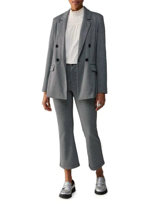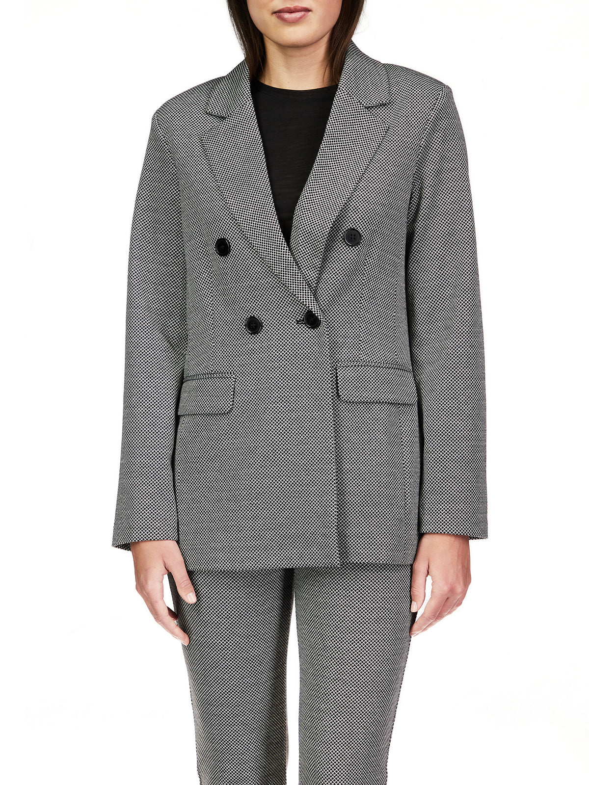 Covered in a bold geometric print, this double-breasted blazer transitions seamlessly from workweek to weekend.