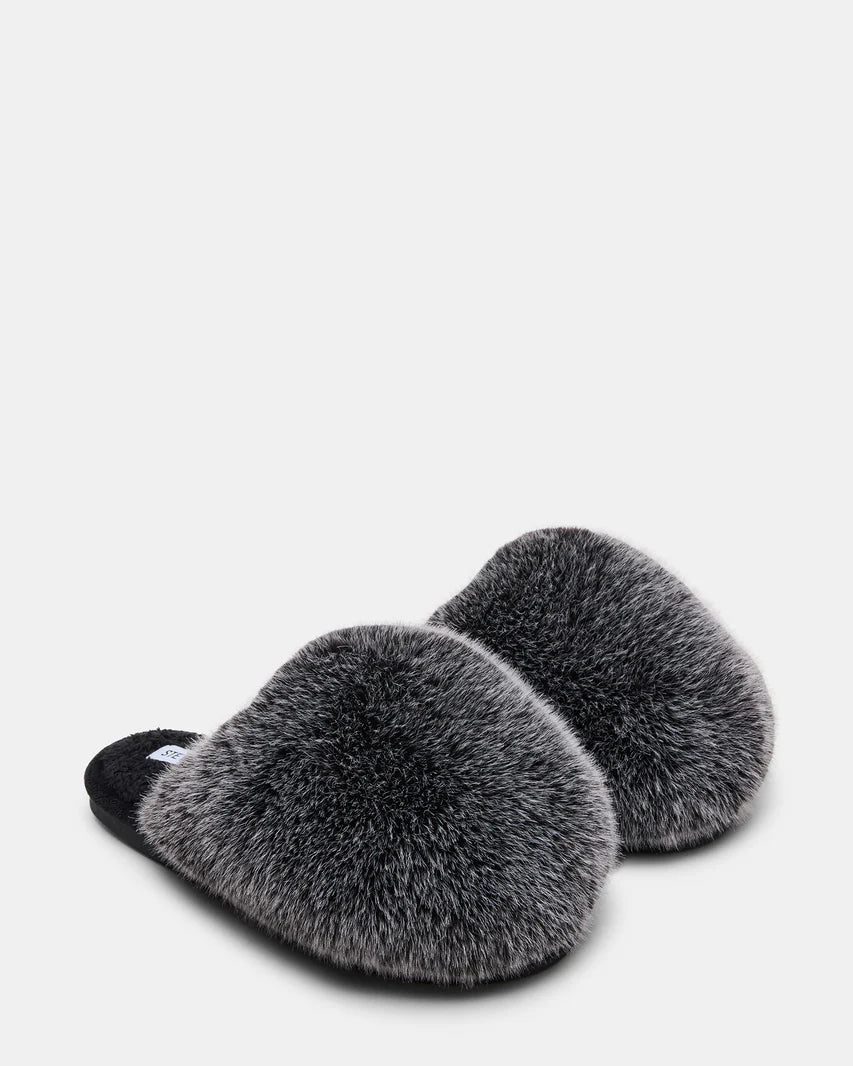 Experience comfy luxury with the POOF faux fur slip on mule Designed for effortless wear, these slippers combine plush faux fur with a convenient mule silhouette, offering warmth and comfort without compromising style. Perfect for relaxing at home, they provide a soft, cushioned feel that keeps your feet snug throughout the day.