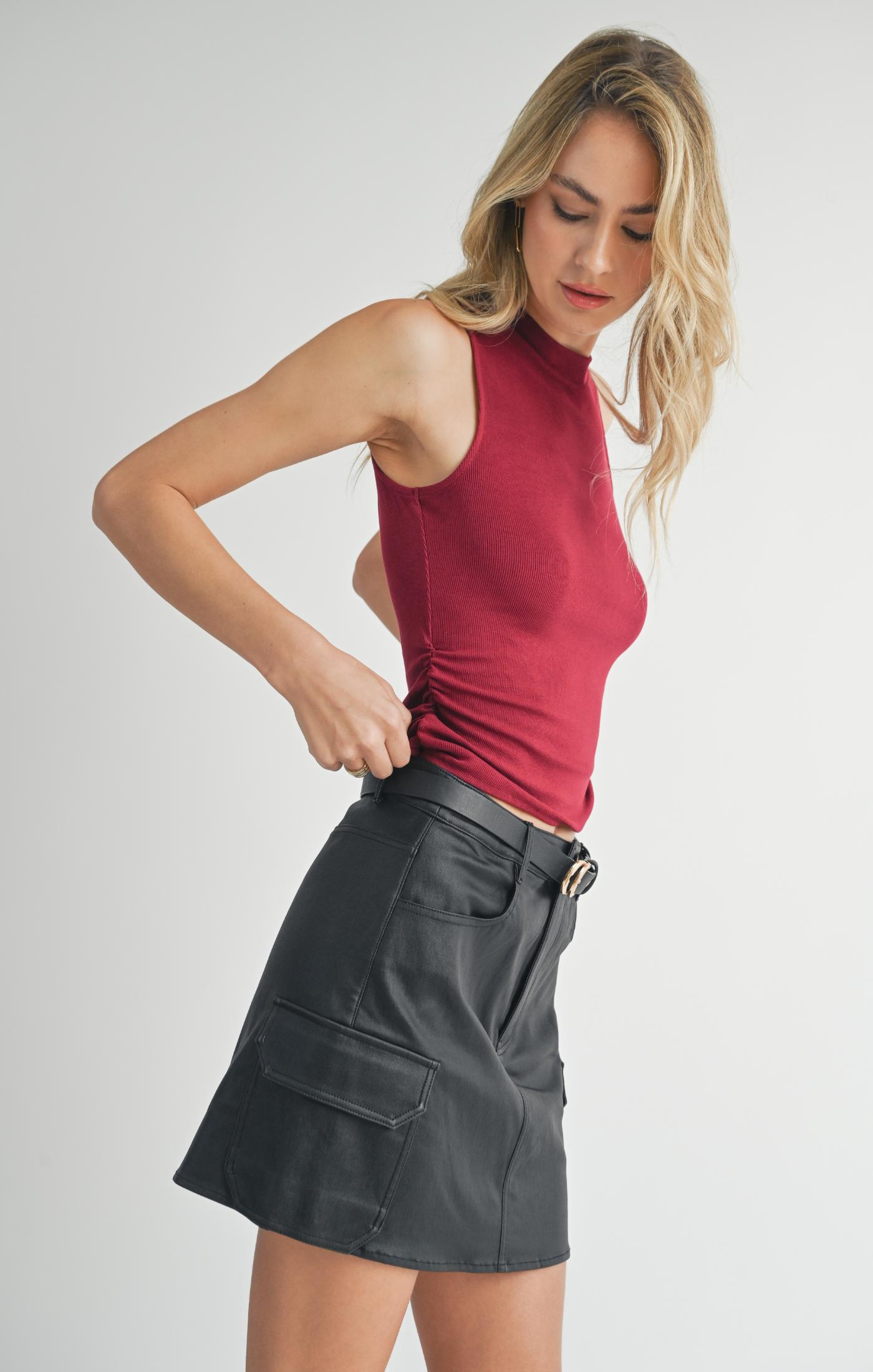 Ronan Mock Neck Ruched Knit Tank