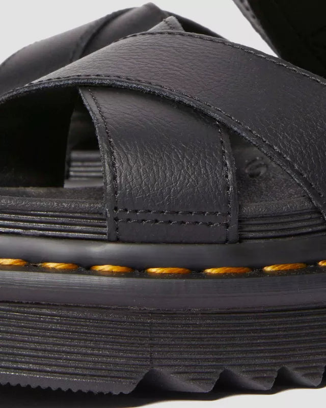 Keep summer easy. The Voss II sandal is lightweight and versatile for a summer on the move. The cross-strap design is secured with two adjustable ankle straps. Built for comfort on long days, it has a SoftWair memory foam footbed and our super-light EVA Zebrilus sole. The serrated sole is grooved and secured with our unmistakable yellow welt stitching.