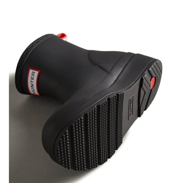 The Play Boot blends playfulness and practicality. A simplifying of the iconic design of the Original Boot, the Play Boot fast became a best-selling Hunter silhouette. Just grazing the top of the ankle, with a flatter platform sole for comfort, finished with a pull tab for easy foot entry. The design is crafted from the highest quality natural rubber, 100% recycled polyester lining and is 100% waterproof.